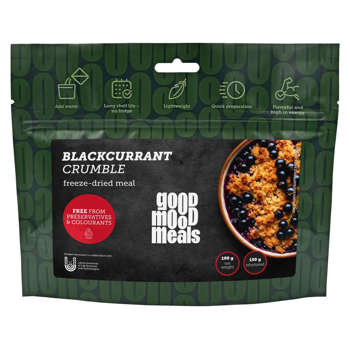Crumbs (butter, sugar, wheat flour), freeze-dried blackcurrant (12%).